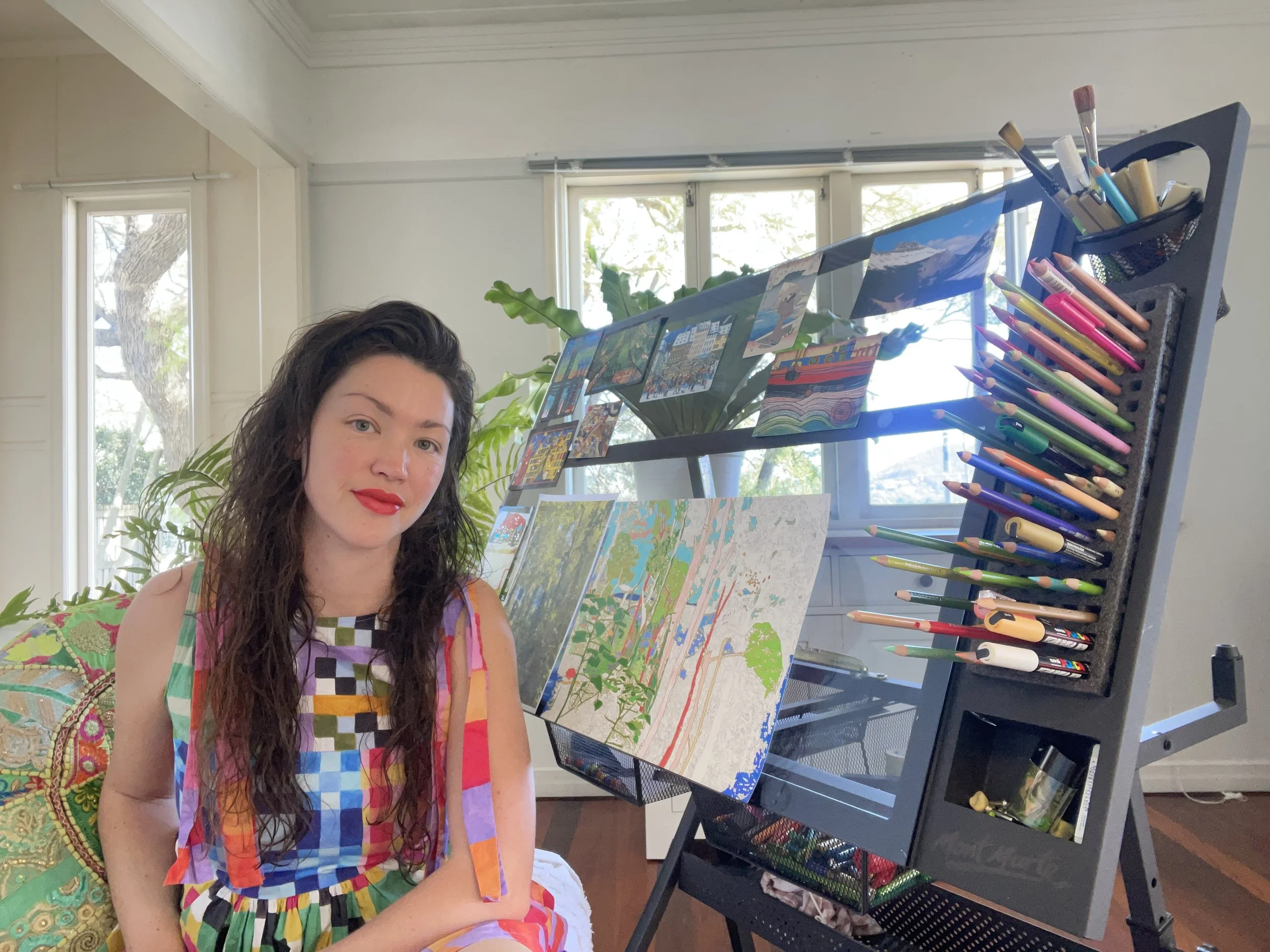 Rachel Gaffney-Dawson is a Brisbane-based contemporary visual artist whose highly detailed coloured-pencil drawings are inspired by immersive experiences in nature. Through layered colour, pattern and intuitive composition, her work translates moments of sensory immersion and stillness into semi-abstract landscapes.