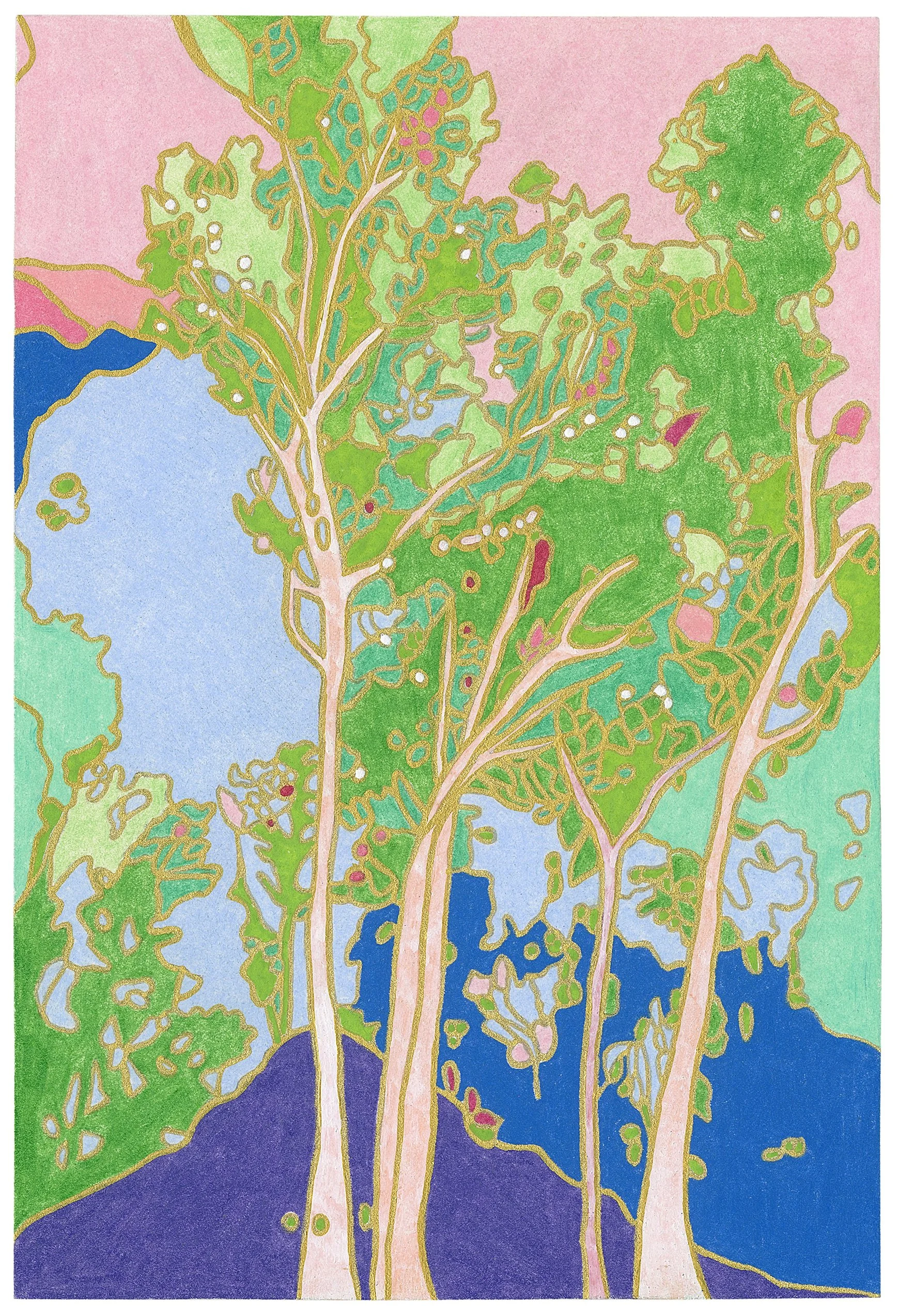 A Breath Moves Through was inspired by moments in nature when a gentle breeze moves through the leaves overhead. The work reflects a sense of free-flowing movement and spaciousness within the landscape, inviting stillness.